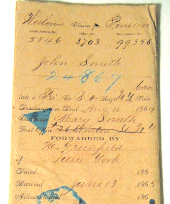 Similar to pension files at the National Archives (NARA), the claim files include their original identifying jacket, and may contain any or all of the following: letters from servicemen, their family members, and military officers documenting service and health conditions; affidavits and other documents proving marriages, births, or deaths; and correspondence between the USSC and federal offices, and other parties. Multiple claim applications may have been filed for the same individual depending on the type of claim.